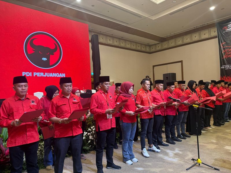 Pengukuhan dan pelantikan tersebut berlangsung dalam rangkaian Konferensi Daerah (Konferda) dan Konferensi Cabang (Konfercab) PDI Perjuangan se-Jawa Timur yang digelar di Surabaya, Sabtu (20/12) malam.