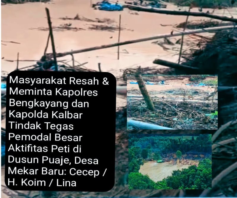 Aktivitas Pertambangan Emas Tanpa Izin (PETI) terungkap di Dusun Puaje, Desa Mekar Baru, Kecamatan Monterado, Kabupaten Bengkayang, adanya laporan warga Dusun Puaje bernama Simon atas penyerobotan lahan di Polres Bengkayang.